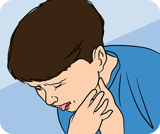 If a child shows signs of choking, stay calm. Ask the child to cough to help remove the blockage. If the child can talk, cry and cough, stay with them and phone 000. If the child is struggling to talk, cry or cough, phone 000. Follow the steps to clear a blockage shown next.