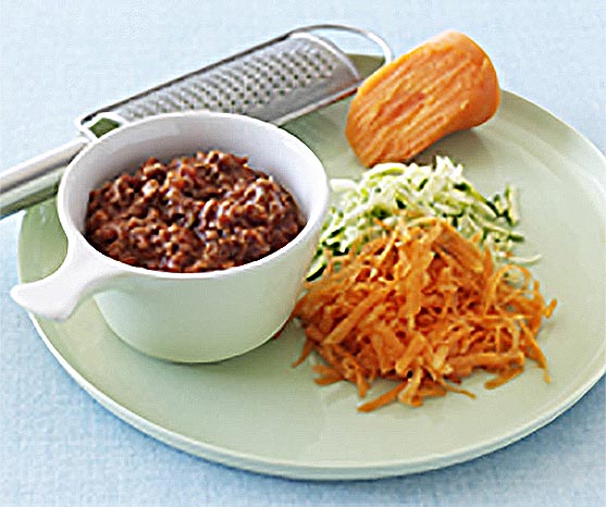Add more goodness to your child’s diet by adding vegies to favourite foods. For example, add grated carrot and zucchini to bolognaise sauce.