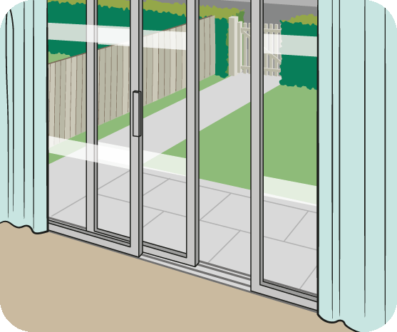 Install safety glass in windows and doors or put shatter-resistant film on windows and doors. Put stickers on glass at eye level.