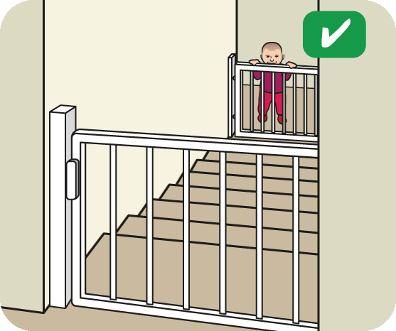 Put safety gates at the top and bottom of stairs and at the entrances to balconies.