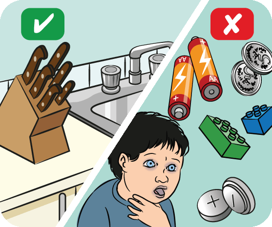 Store sharp items out of children’s reach. Watch out for small objects that could be choking hazards or that your child could stick into their nose, ears or eyes.