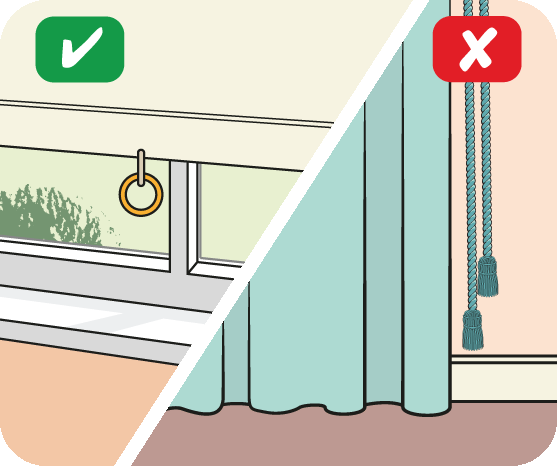 Prevent strangulation. Keep chains and cords on blinds and curtains shorter than 5 cm, or wrap them around cleats at least 1.6 m above the floor.