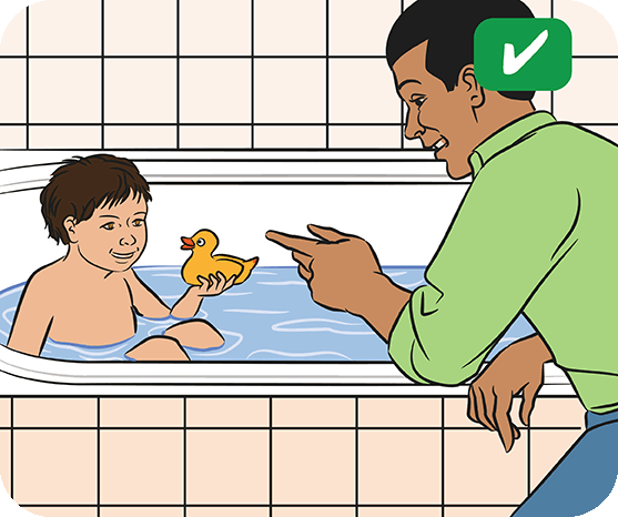 Never leave children alone in the bath or near water. Always stay within arm’s reach and sight of them.