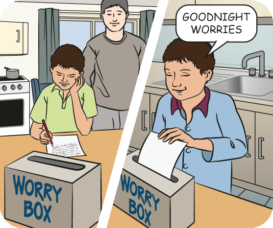 Try a worry box. Before bedtime, your child can draw or write down their worries. At bedtime, worries go into the box. Talk about worries the next day.
