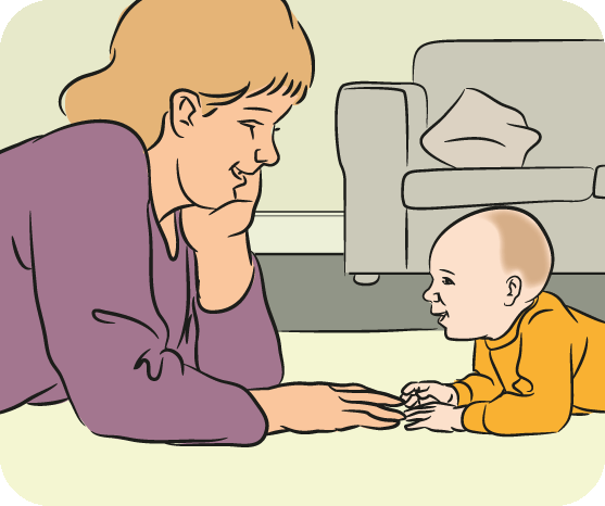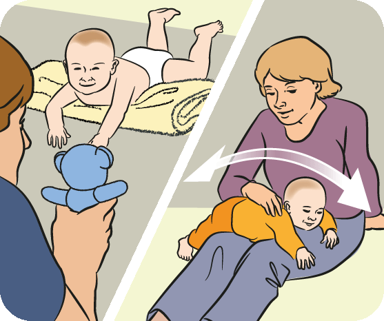 Place safe objects and toys close to your baby. Move them from side to side in front of your baby’s face. This encourages your baby to move, lift and turn their head.