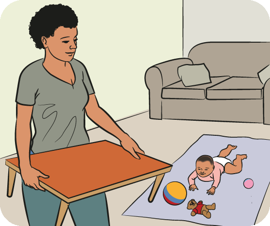 Supervise baby during tummy time. As your baby gets stronger and starts moving more, clear away dangerous things.